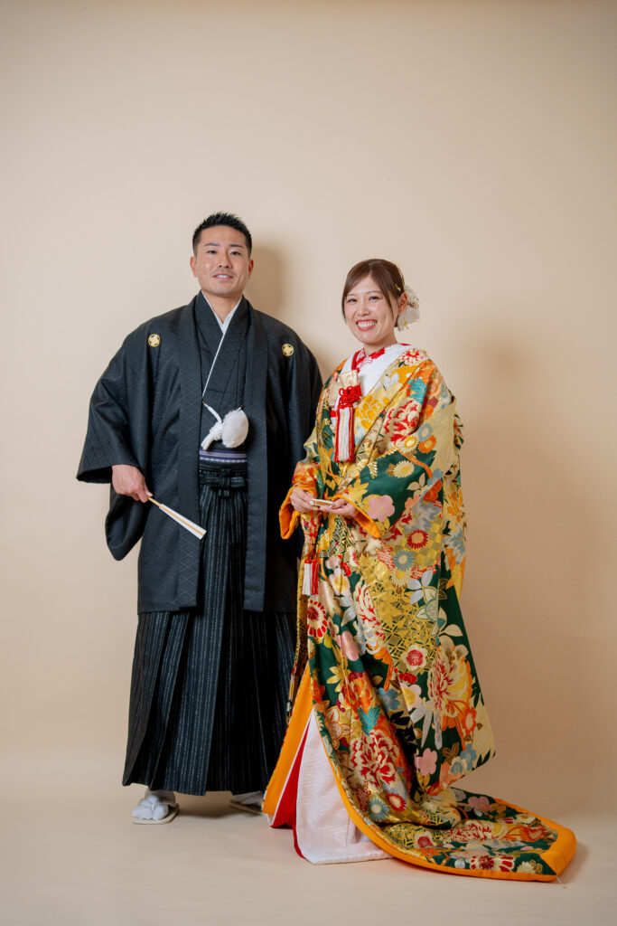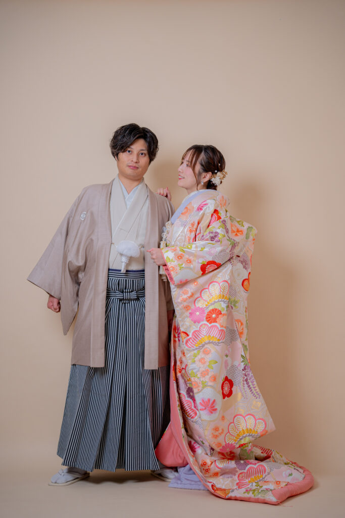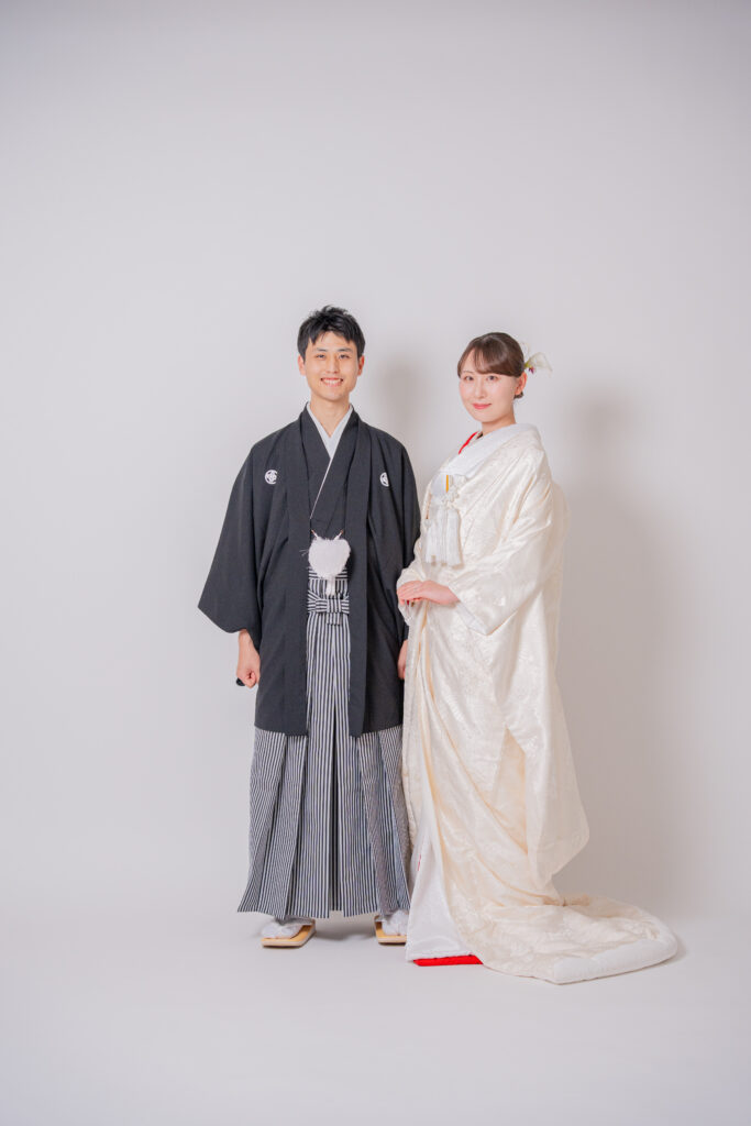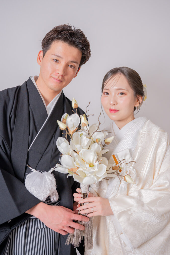 「和装前撮り=色打掛(色付きの着物)」というイメージがあるかもしれませんが、実は1着プラン(1着のみ着用)を選ばれる方の圧倒的No.1は「白無垢」です。
