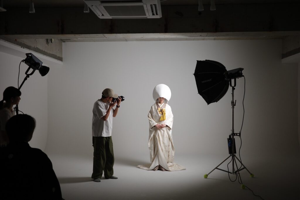 • まずはカメラマンが、着物の乱れを完璧に整え、最も美しく見えるポージングで撮影します。